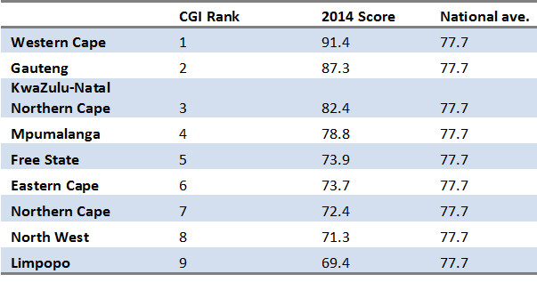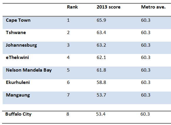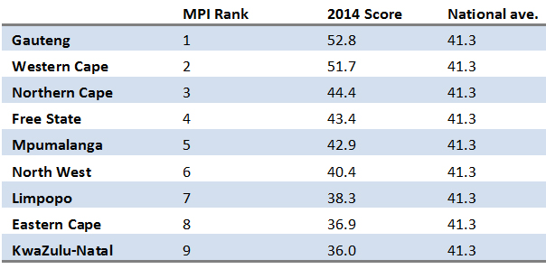 Metro results: Top metros continue to fall within a close range of each other on the MPI (see Table 3), but Cape Town retains its first place, while Tshwane rose to second place with robust spending contributing to its higher ranking in 2014.