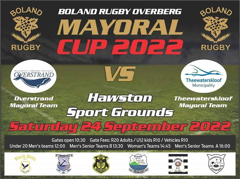 Overstrand Municipality will host the Boland Rugby Club in their opening fixture of the Mayoral Cup regional rugby challenge this Saturday, 24 September 2022, at the Hawston Sports Grounds.