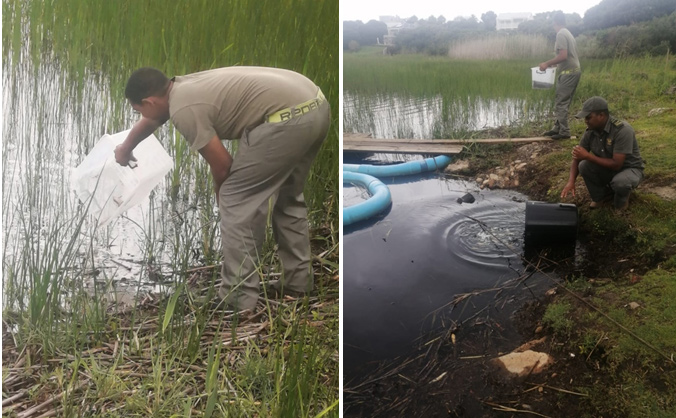 Please do not place them back in the Saltpan, the pan does not have a high enough oxygen count in the water to sustain the hundreds of frogs that are emerging and that is why you will see that some of the frogs did not make it. The Onrus Estuary’s water quality has also been tested in the last two weeks and no high readings for E.coli was recorded.