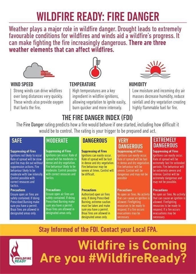 The five possible Fire Danger Index (FDI) ratings are your trigger to be prepared and act.