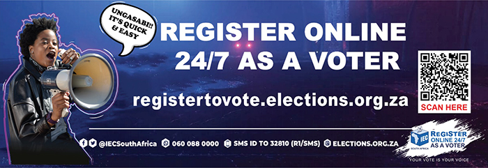 Register online https://registertovote.elections.org.za - anytime, anywhere; It’s safe, quick and easy!