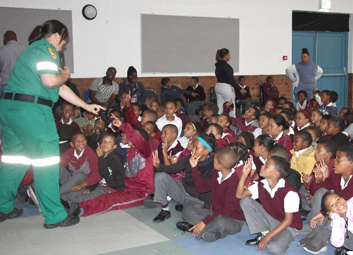 Emergency Medical Services Paramedics, Lana Joubert and Richardo Telling, made sure the children knew which number to dial for an ambulance – 10177 from a landline and 112 from a cellphone. They said it is important to give emergency personnel your name and surname, contact details, and address before ending the call.