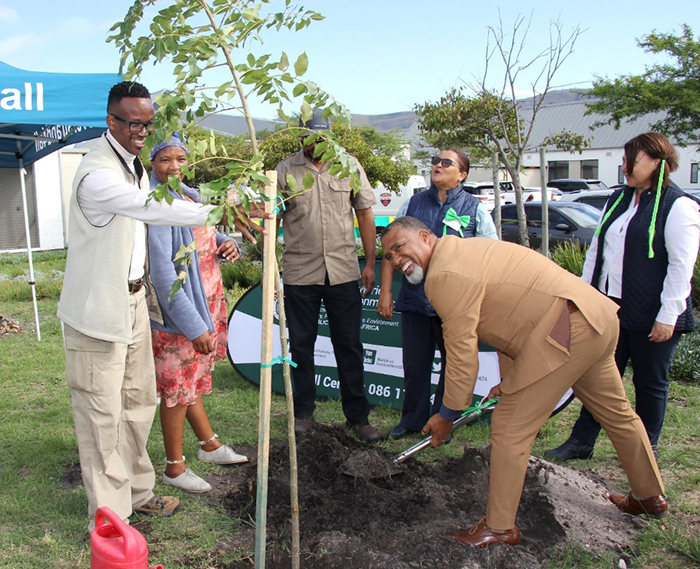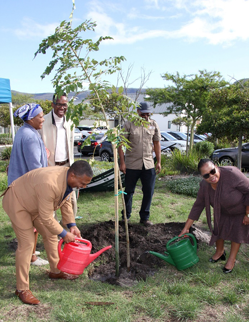 Before heading to Kleinmond for a seminar, the dignitaries paid a visit to the Hermanus Community Day Centre (CDC) where they planted Rhus pendulina, Ekebergia capensis, and Harpephyllum caffrum trees.