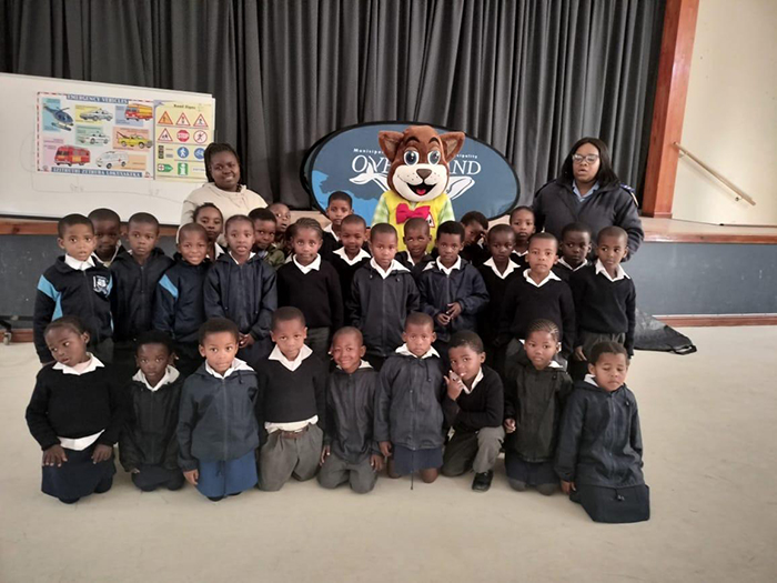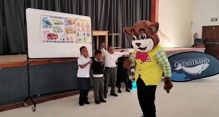 Danny Cat (Daantjie Kat), recently paid a visit to Lukhanyo Primary in Zwelihle to demonstrate good road safety habits. He was accompanied by traffic officer Noluthando Kedama from the Overstrand Municipality Traffic Services Department.