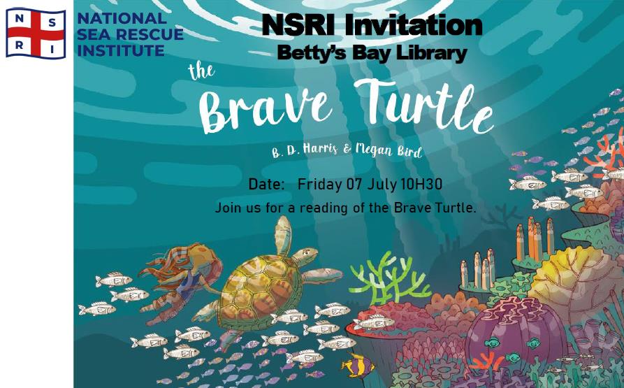 Join the Betty’s Bay Library and the NSRI for a reading of the Brave Turtle book at the Betty’s Bay Library, on Friday 7 July 2023 at 10:30.