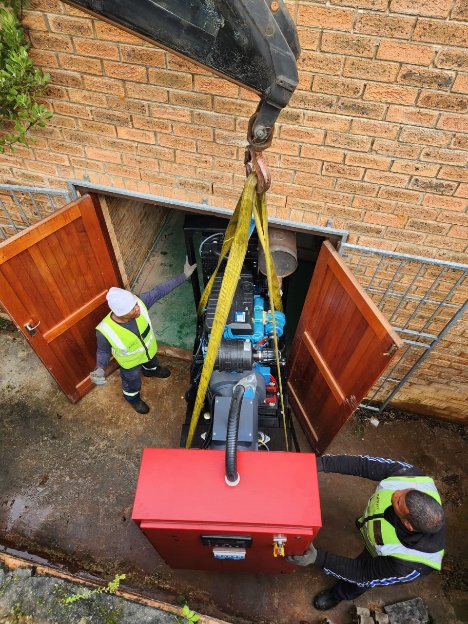 The new 180kVA generator being installed at the Kleinmond Tennis Courts Sewerage Pumpstation