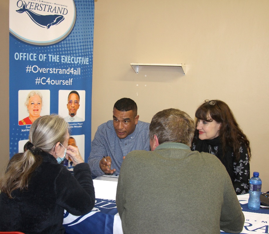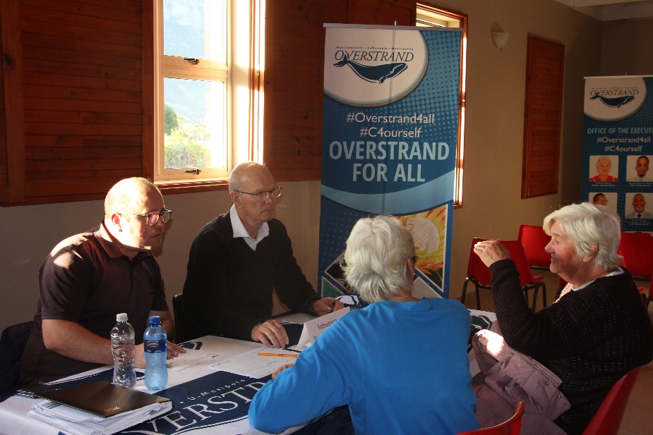 Overstrand Executive Mayor, Dr Annelie Rabie said the purpose of these engagements are the ideal platform for residents to meet with her and the Mayoral Committee as political heads of the respective departments (directorates) as well as the Municipal Manager and Directors on the administrative side who will assist with technical advice.