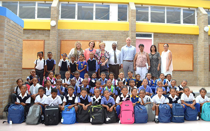 The sweltering early morning heat and rising temperatures did little to dampen the spirits of a boisterous group of grade-one learners at Mount Pleasant Primary on Tuesday, 19 January when they became the recipients of stationery laden backpacks, courtesy of the Ward 4 Backpack Project. More than 50 backpacks filled with prescribed stationery were handed over to the young learners by Michael Cardo, MP: Shadow Minister of Economic Development and Nicolette Botha-Guthrie, Overstrand’s Executive Mayor.