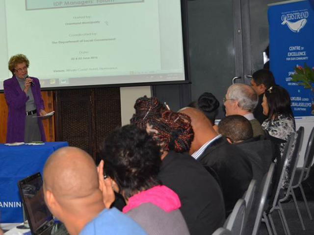 Thursday, 2 June 2016 – The welcoming address by Overstrand Mayor Nicolette Botha-Guthrie (pictured standing) was well-received by attendees of the two-day Provincial IDP Managers’ Forum that was recently held at the Whale Coast Hotel in Hermanus.