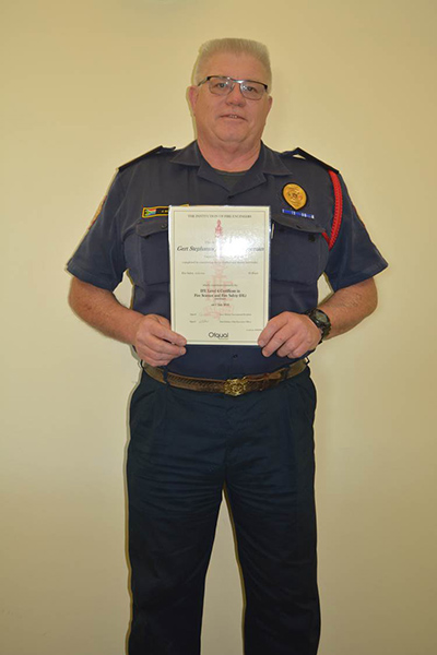Overstrand Fire Safety Officer, Joe Schoeman proudly displays his Level 4 Safety Certificate which he obtained earlier this year through the UK-based Institute of Fire Engineers.