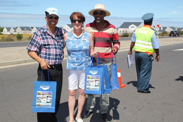 Motorists that were stopped in the friendly roadblock received a goody bag with information on places to visit during the holidays and things to do in the Overstrand, tips on long distance travelling and road safety, a copy of the Hermanus News and various other small gifts.