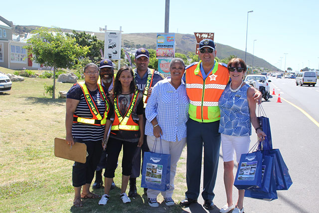 Tourists visiting the Overstrand were pulled over by Traffic Officers during a ‘Welcome in Hermanus Roadblock’ at the Sandbaai intersection on Thursday, 15 December. Similar roadblocks were held in Kleinmond and Gansbaai with the assistance of SAPS, tourism offices, Cape Nature and members of the Walking Bus Initiative.