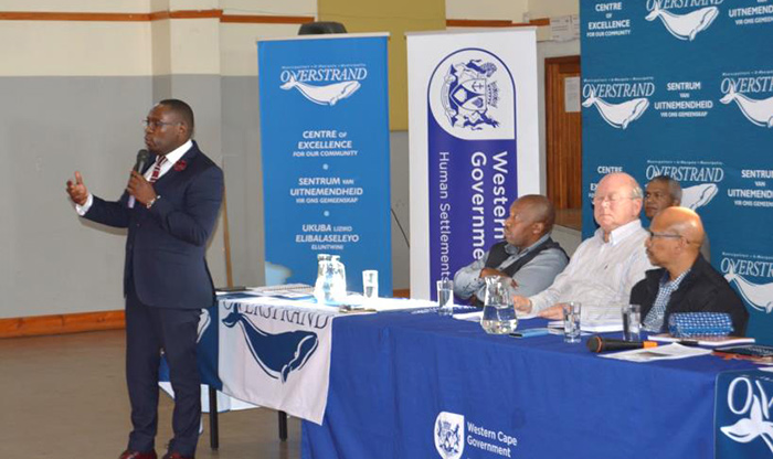 On Tuesday, 24 October 2017, Overstrand Executive Mayor Rudolph Smith received Western Cape Human Settlements MEC, Bonginkosi Madikizela and his delegation for the second of a series of roadshows on Affordable Housing. Held in Mount Pleasant, the well-attended event forms part of an initiative aimed at informing the public of the various housing programmes available for those seeking access to affordable housing in the Overstrand. Also present was Overberg Deputy Mayor Archie Klaas, Overstrand Mayoral committee members, councillors, directors and a host of housing officials.