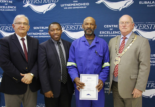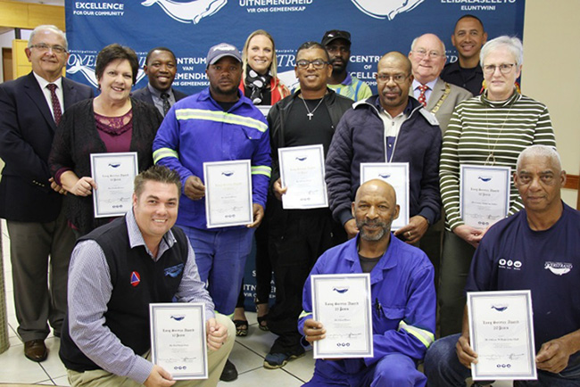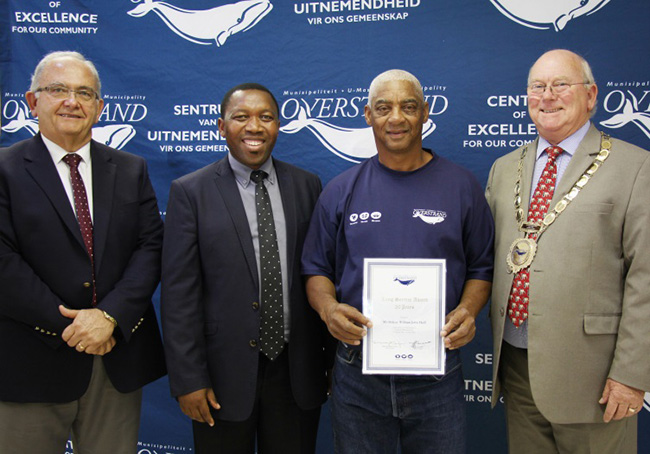 Handing over the certificates, Overstrand Executive Mayor Dudley Coetzee said the Council appreciates the work done by these dedicated employees and thanked them for long and outstanding service to the municipality.