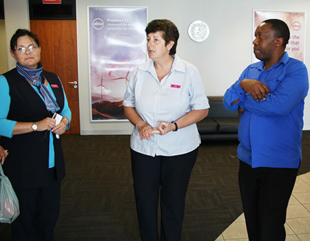 Mandy and Betsie of ABSA Gansbaai seen with Cllr Andrew Komani.