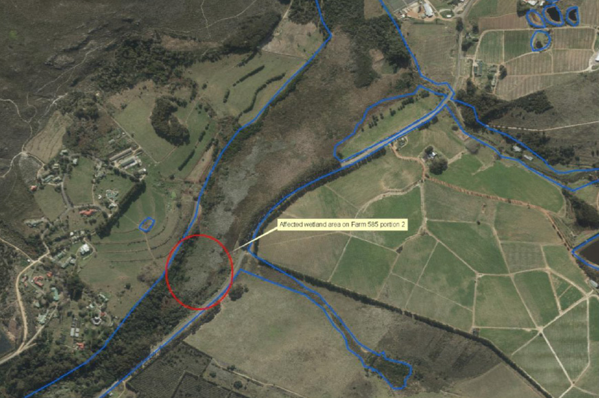 Further inspection revealed the implications and significant negative impacts occuring on the wetland system. This wetland is characterised as the only remaining piece of palmiet vegetation wetland, which plays a critical role in the functioning of the Onrus River and the Onrus Estuary and is of considerable ecological importance and must therefore be protected.