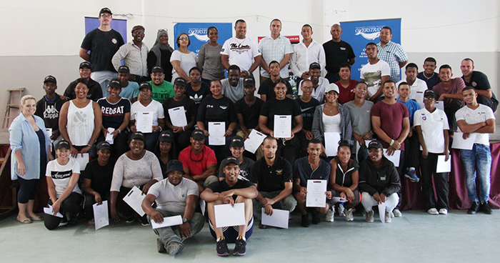 Pictured with the successful candidates who completed the peace officer training course at their certification ceremony at the Thusong Centre were Zingani Tshefu (OM Regional Inspector), Ghaironesa Abdol (WC Department of Community Safety), Joan Bailey (WC Department of Community Safety),