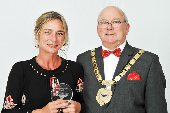 The Mayoral Trophy for the Woman of the Year went to Jami Kastner (Butterfly Centre), the Achievers of Excellent went Jorika Rabie (Purple Angels) and Natasha Bruiners (Catapult Foundation), the Environmental Conservation went to Sean Privett (Walker Bay Fynbos Conservancy), the Entrepreneurial Achievement went to Di Rattle (Hermanus Breweries, Old Harbour beer), the Tourism Development went to Peter Kastner (Stanford Hills Estate) and the Junior Achiever went to Izaan Newman Gansbaai Academia.