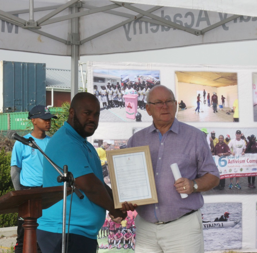 It is tradition that the mayor of each town writes a letter of goodwill to the mayor of the next town. In keeping with tradition, Mayor Dudley Coetzee received a letter of goodwill from the Mayor of Agulhas. Trans Enduro Exercise Commander Lt Phitlho was pictured with him.