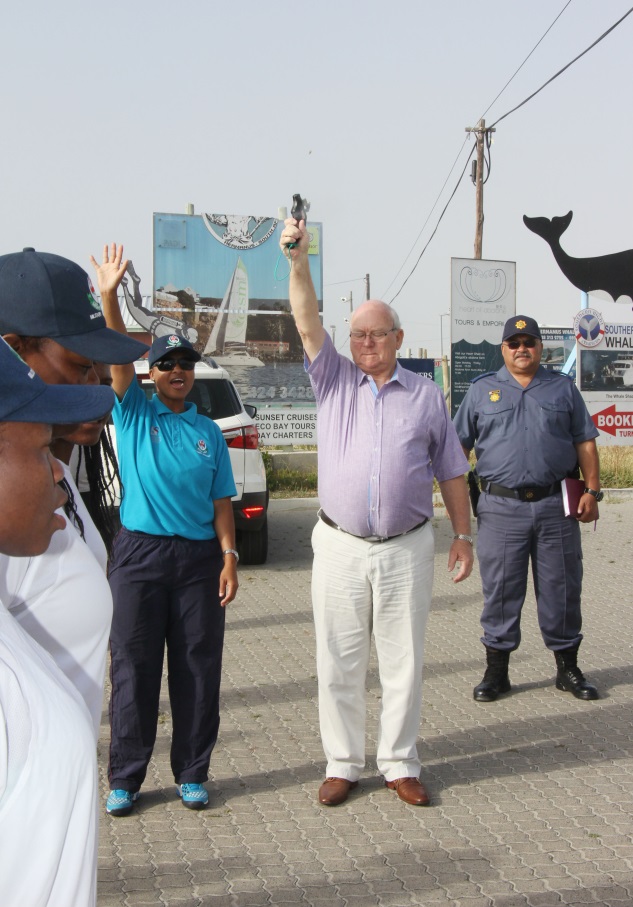 According to the race tradition, the mayor of each town on the race route writes a letter of goodwill to the mayor of the next town. In keeping with tradition, Mayor Dudley Coetzee received a letter of goodwill from the Mayor of Agulhas and handed over Overstrand’s letter to exercise commander Lieutenant Phitlho who will deliver it to the mayor of the next town.
