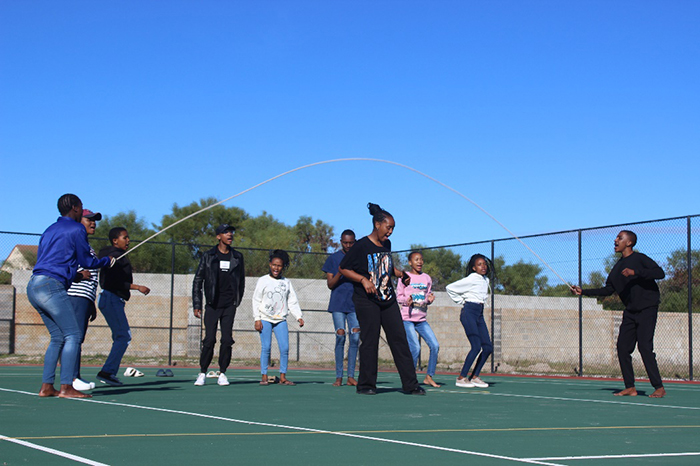 Nothando Zinganiso in Drie-stokkies. Emilhle Rasana, Axolile Mfundisi, Siphe Bham, Sinothando Shumane, Azola Kibido and Phawoluhle Mjukleni will do their best in Kgati, a rope skipping game.