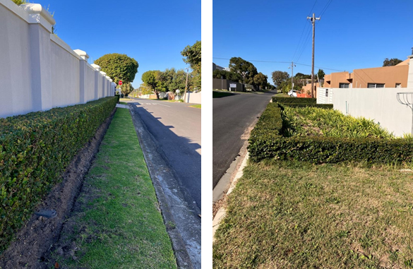 Home owners need to ensure that gardens do not spill on to the road reserve to such an extent that it is virtually impossible for any pedestrian to move without having to step into the road and, by inference, into traffic.