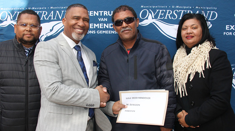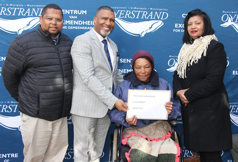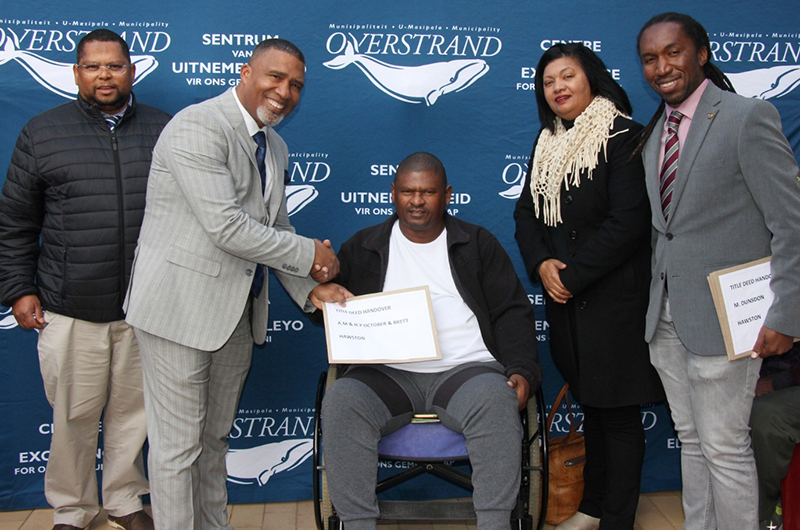 Overstrand Municipality's MMC for Community Services, councillor Ronald Nutt, was joined by the ward councillor for Hawston Arnie Africa and Elnora Gillion on 30 August 2022 to hand over 333 title deeds to beneficiaries in Hawston.