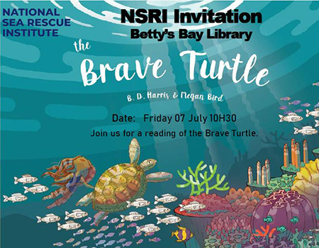 Join the Betty’s Bay Library and the NSRI for a reading of the Brave Turtle book at the Betty’s Bay Library, on Friday 7 July 2023 at 10:30.