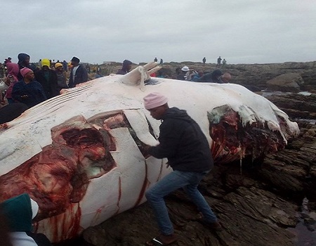 Overstrand Deputy Mayor, Cllr Lindile Ntsabo, warned members of the public not to eat the meat as it is unknown why the whale died.