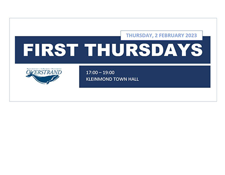 Join Overstrand Executive Mayor, Dr Annelie Rabie, Mayoral Committee members (executive councillors), the Municipal Manager and his Top Management team for the first First Thursday meeting of 2023 on 2 February at the Kleinmond Town Hall from 17:00 - 19:00.