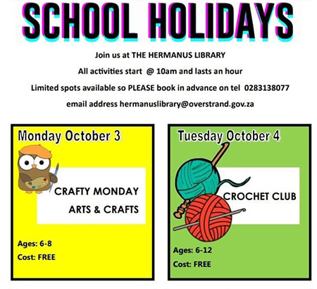 Overstrand Libraries offer a range of activities for children during the October school holiday break.