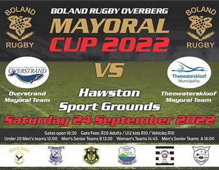 Overstrand Municipality will host the Boland Rugby Club in their opening fixture of the Mayoral Cup regional rugby challenge this Saturday, 24 September 2022, at the Hawston Sports Grounds.