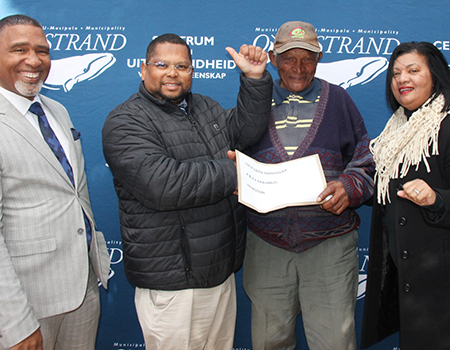 Overstrand Municipality's MMC for Community Services, councillor Ronald Nutt, was joined by the ward councillor for Hawston Arnie Africa and Elnora Gillion on 30 August 2022 to hand over 333 title deeds to beneficiaries in Hawston.