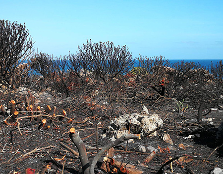 We appeal to residents not to cut or remove burnt standing trees and fynbos that remain after the controlled burn in Kleinmond last month. Even if YOU think it looks ugly and spoil your sea view.