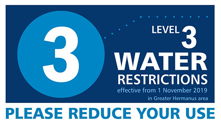 Residents in the Greater Hermanus area face stricter water restrictions from 1 November 2019, when Level 3 water restrictions will be implemented.