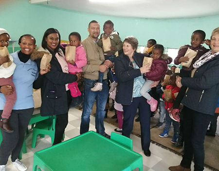 Municipal employees Daleen Potgieter, Karin van der Merwe, Virgil Lamour and Anga Gxoyiya of the Human Resources Department also embraced the charitable spirit of Mandela Day; goody bags were handed to the children and teachers at Nomzamo Creche in Zwelihle.