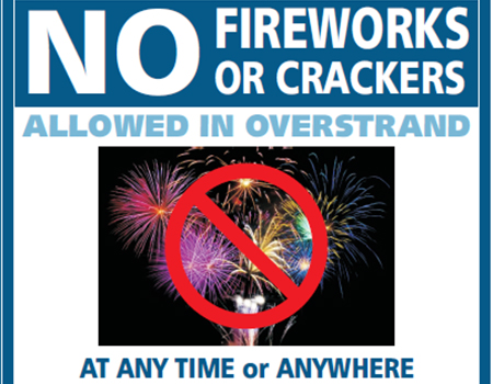 All fireworks have been banned throughout the Overstrand this summer due to the drought and very high fire risk.
